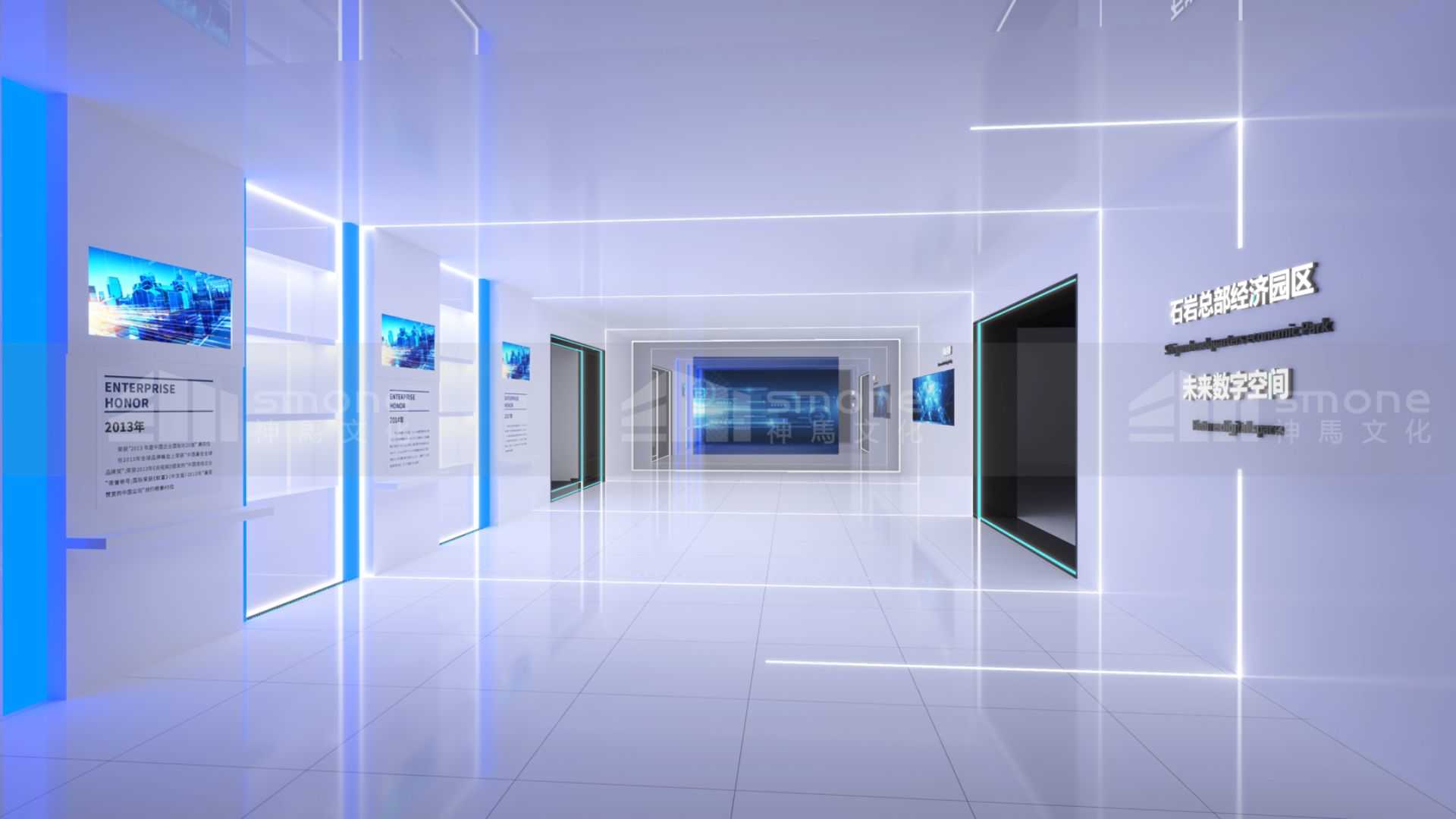 神馬文化將未來數字空間作為石巖總部經濟園區的科技名片,通過多媒體數字技術全面打造,讓參觀者以智能感、沉浸感、科技感、未來感四個維度全面感知數字科技世界。